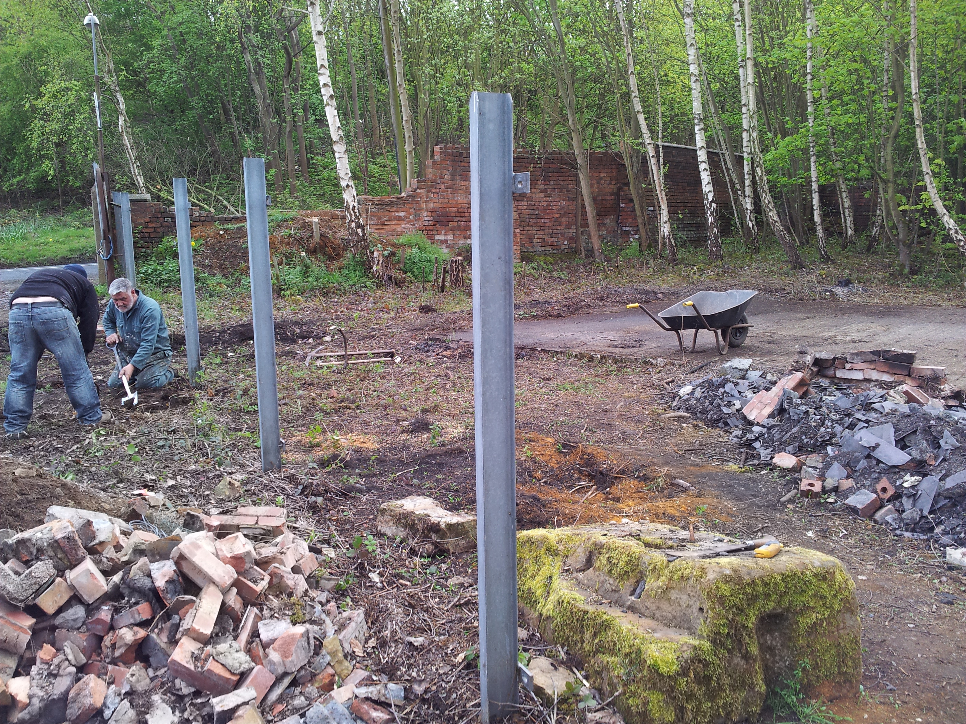 The biggest job on Saturday, and one which has made a noticeable difference to the site, was the removal of the metal security fencing which effectively divided the site and prevented the Friends from being able to open up space for vehicles to park and manoeuvre. Removing the fencing panels required the right tools and a sufficient numbers of hands to loosen, lift and move them, especially as they had been very firmly concreted into position.