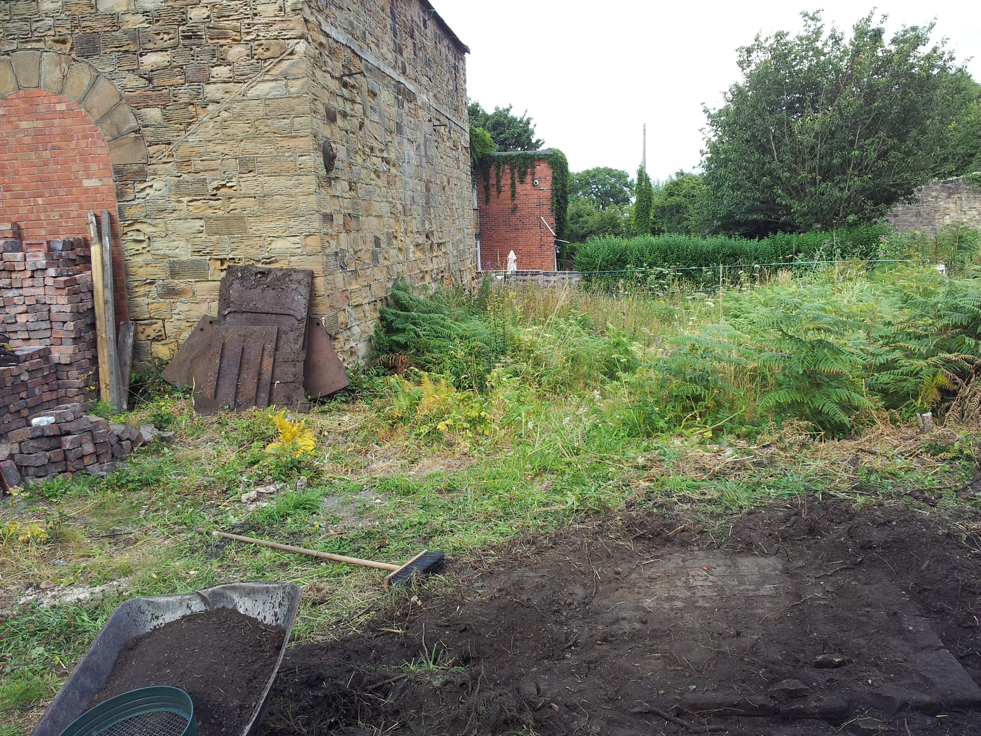 Looking back into the yard from the Wath Road boundary wall, showing the area of investigation.
