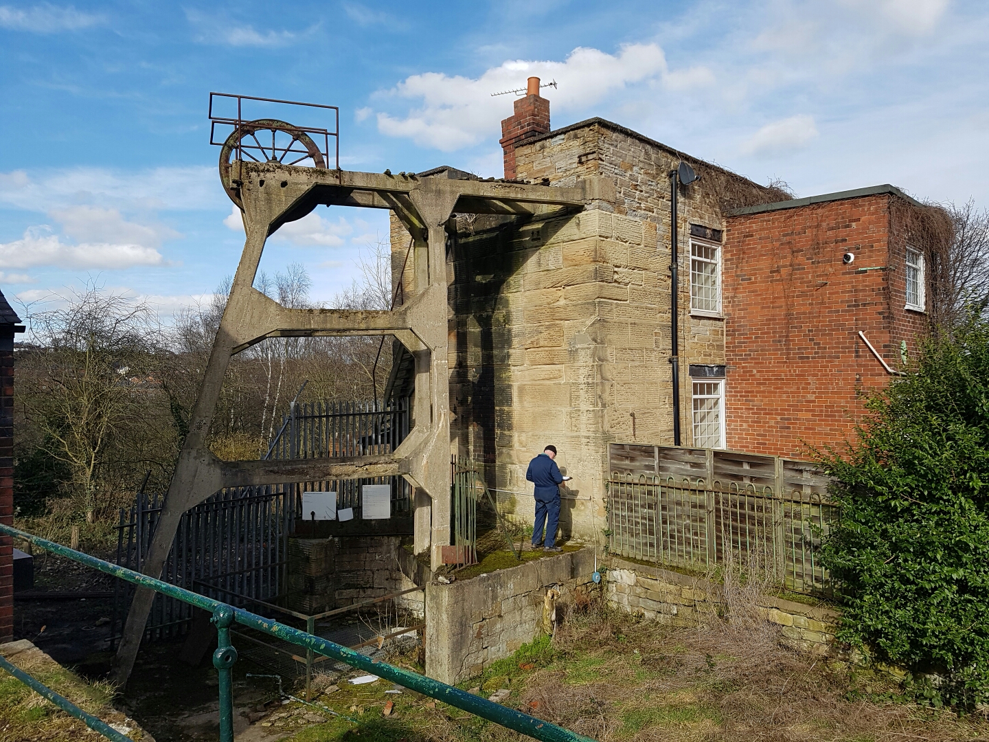 Meanwhile on the lower terrace of the colliery, where the winding enginehouse looks down over the Elsecar Heritage Railway and the hidden beauty of the canal basin, volunteer Nigel continues the work of recording features of the buildings, measuring lengths, widths, heights and details of the stonework.