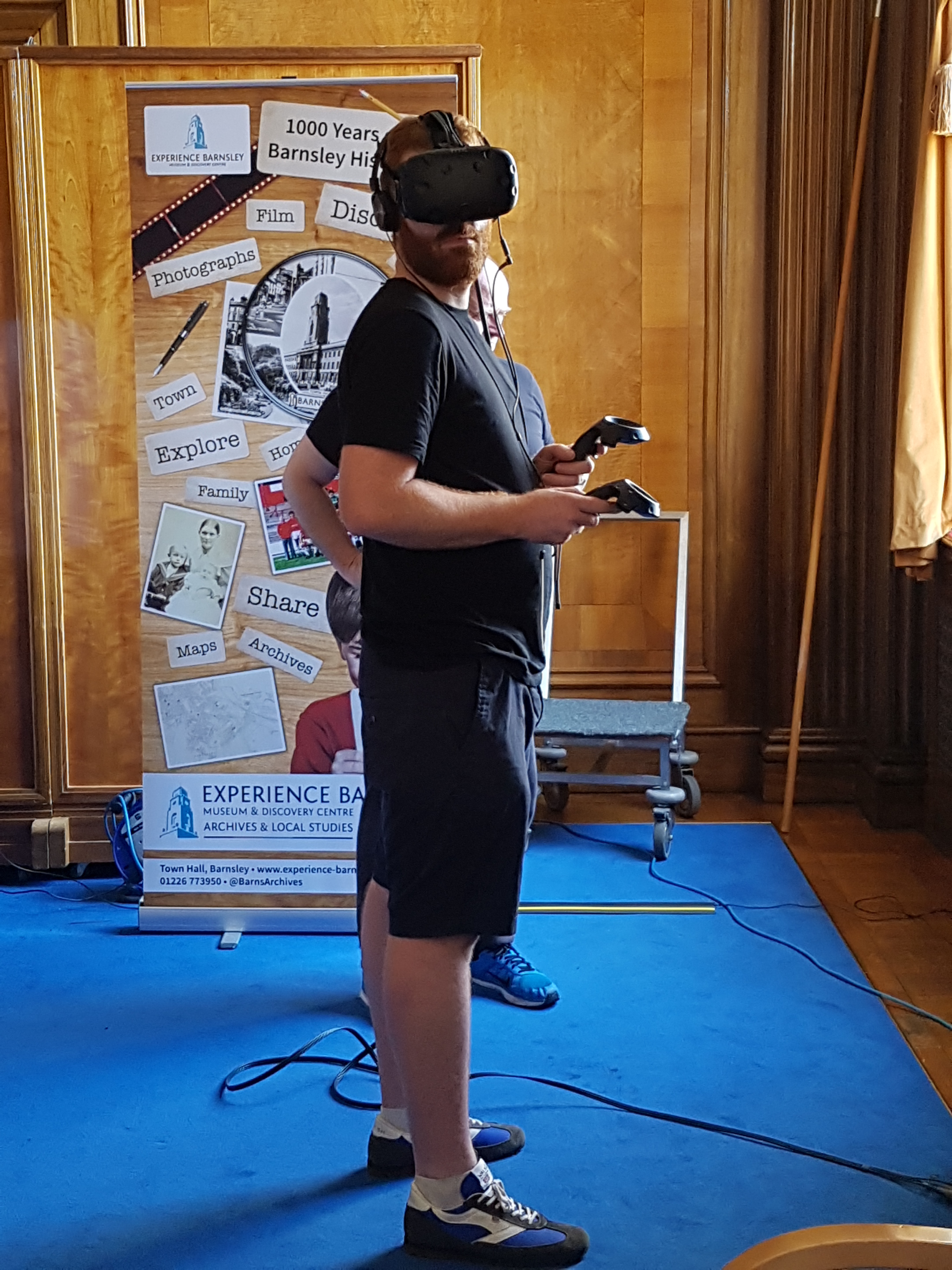 On arriving, the Friends headed up to the reception rooms, where they found Darfield artist Iain Nicholls already getting his Virtual Reality kit ready for another day of VR Hemingfield Colliery experiences.