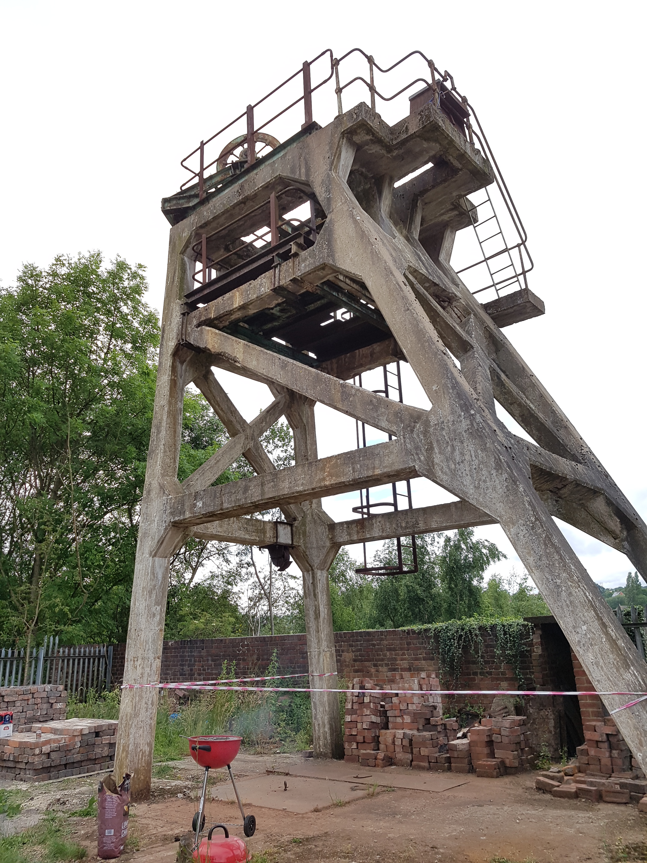 Pausing for a cuppa, the Peak adventurers and brick-squad gathered by the headgear and sat in the summer sun, discussing progress and reflecting on 3 years of change at the site.