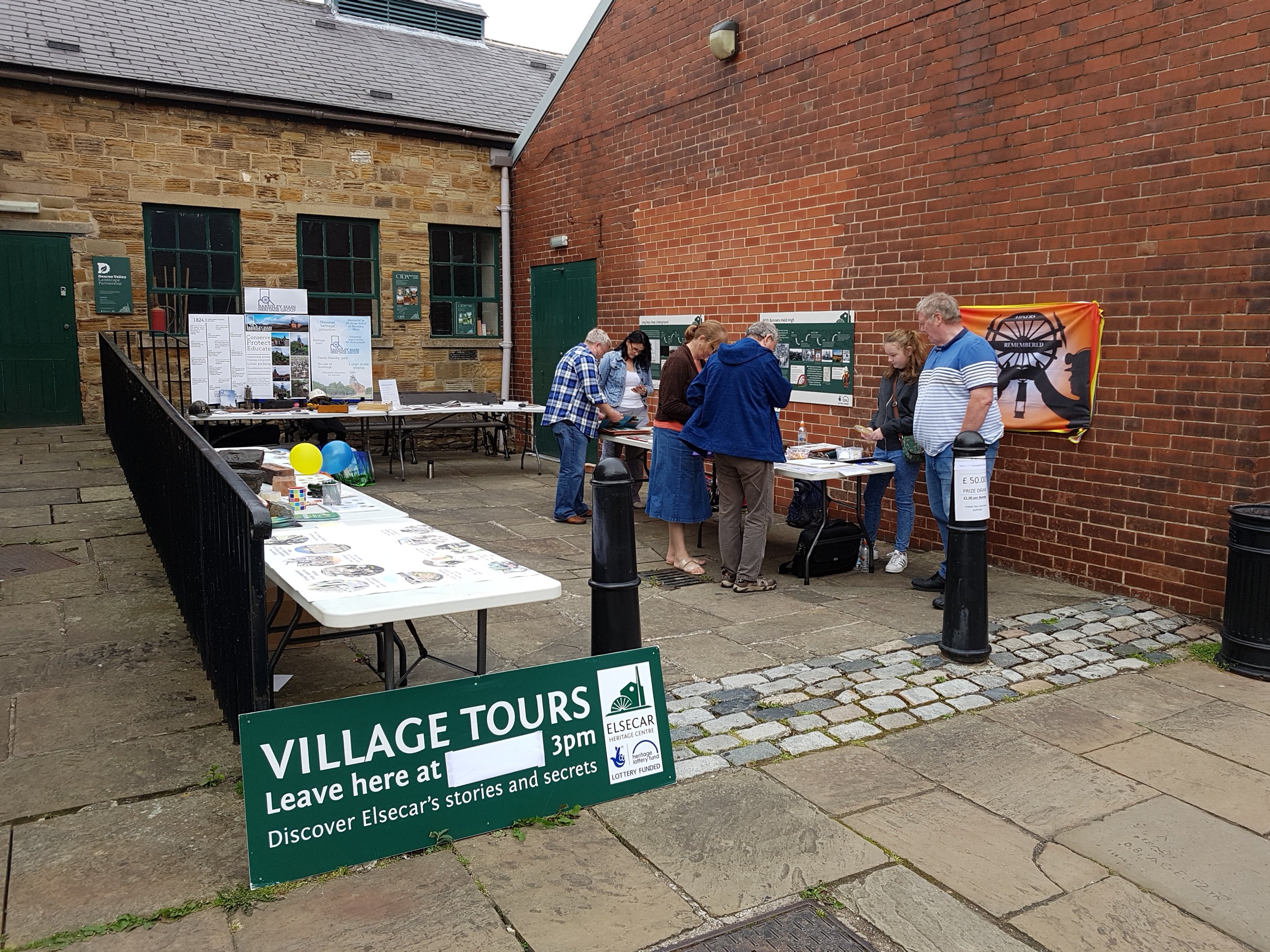 Heritage and mining groups were invited to present displays by the visitors centre at Elsecar, and the Friends were delighted to set up stall besides our friends from Barnsley Main Heritage Group, and alongside the dedicated team from Elsecar Heritage Centre and Barnsley Museums providing tours and games for families discovering Elsecar for the first time.