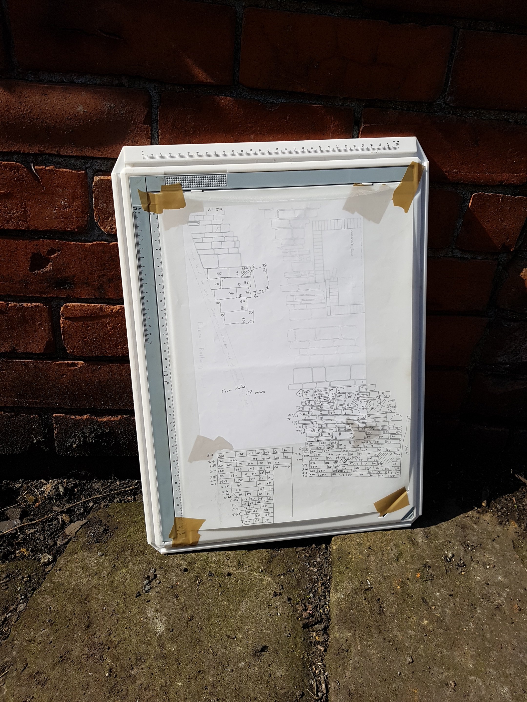 Earlier in the day volunteer Nigel set to measuring the current state of the archaeological dig at the rear of the winding engine house (at the northern end of the site).