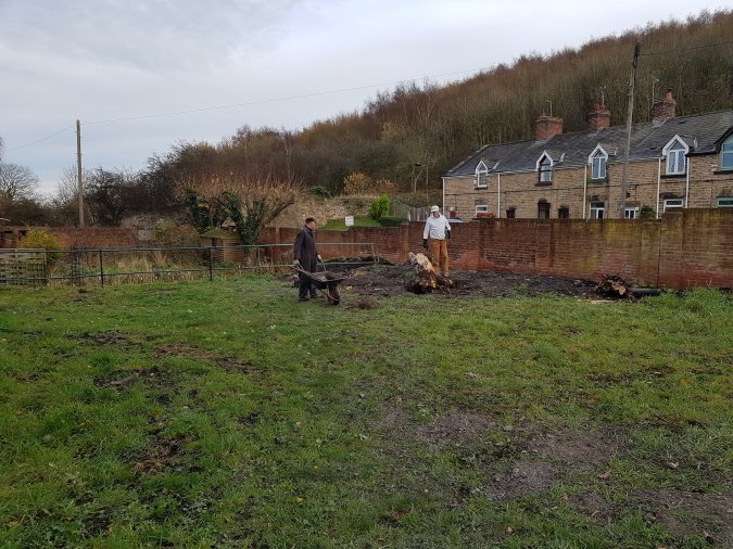 Ever-proud to keep the pit tidy inside and out, the friends swept up the pavement by the entrance and stacked the compost, prepared for winter.