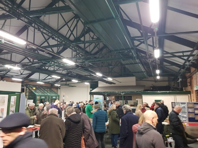 The busy Elsecar Heritage Railway stand, with Oliver Edwards sharing the success of the line, and the opportunities available for the Coalfield Memorial Line.