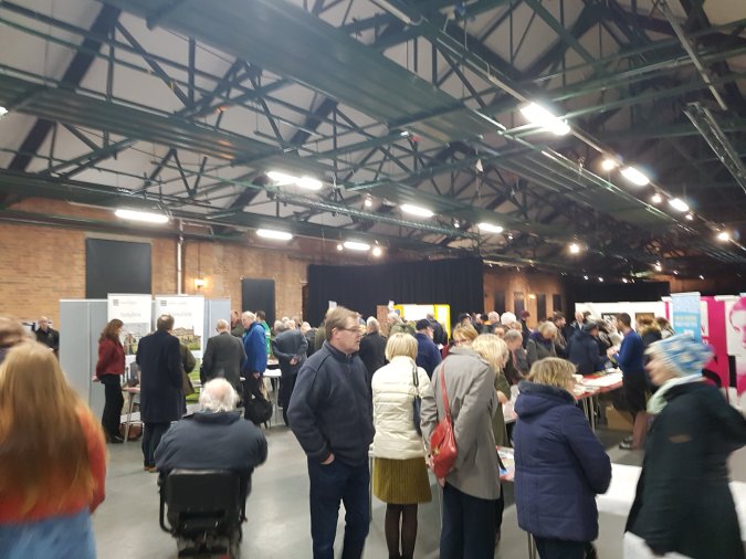 A busy scene in the Ironworks at Elsecar – members of the local community and invited guests exploring a wonderful range of displays and tables from groups