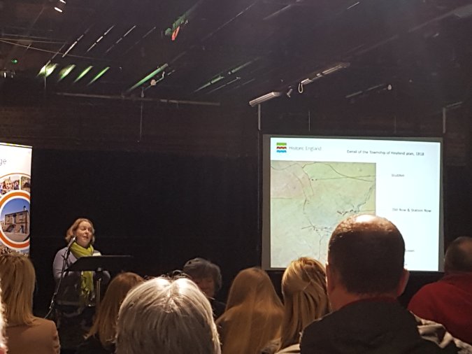 Dr John Tanner next stood up to introduce the work of experts from Historic England; architectural historian Dr Lucy Jessop and archaeologist Dave Went. Dr Tanner has been engaged in the work of preserving and developing the heritage at Elsecar for many years now, since working to establish the new Museum at Barnsley Town Hall, and seeing the conservation work on the Newcomen engine at Elsecar.