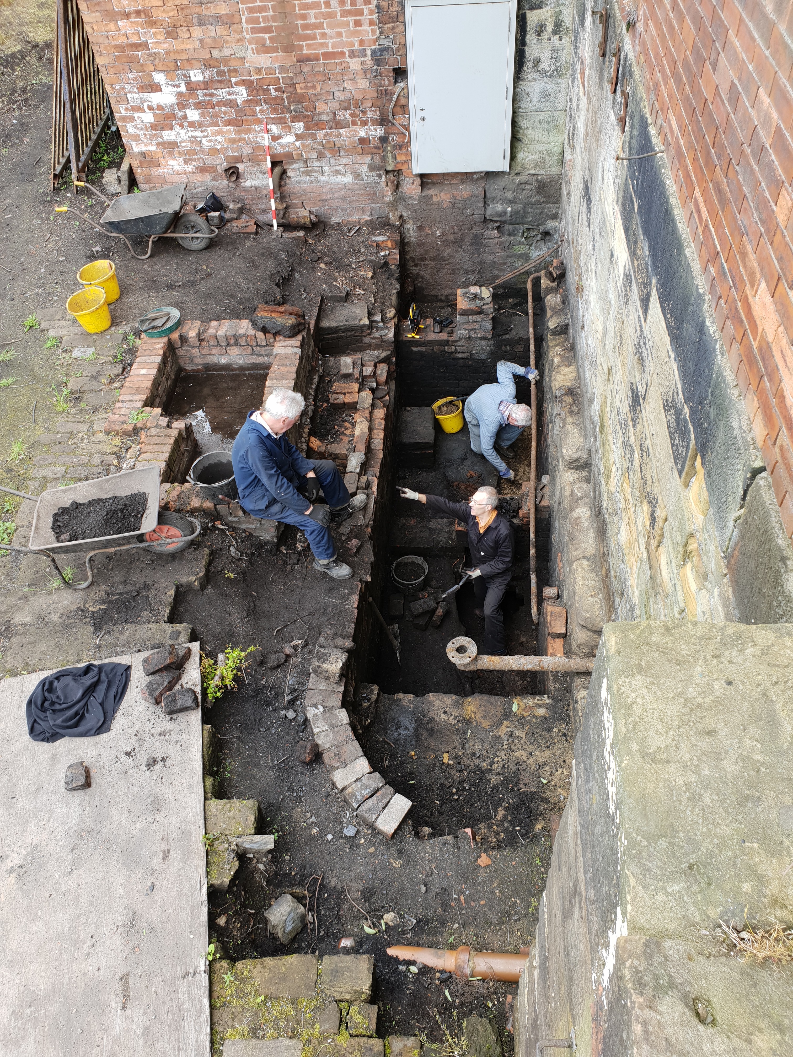 Keeping cool in the moderate shade of the winding engine house were ‘the crew’ – regular volunteers Nigel, Alan, John and Keith returned to the fray, excavating the pit feature which is now two metres down from where we once stood a couple of years ago.