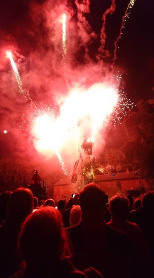 Beginning this series of events was a spectacular evening performance of the Man Engine at the Ironworks. Arranged by Great Place Wentworth and Elsecar, the Man Engine ‘Afterdarker’ event on Saturday 23rd June was a story told through live performance, pyrotechnics, and the unforgettable mechanical puppet – the ‘Man Engine’. The Friends of Hemingfield Colliery were in attendance, Directors Christine and Glen and both noted the striking combination of impressive puppetry and live performance, particularly the Man Engine recital of the victims of the Husker pit disaster of July 1838.