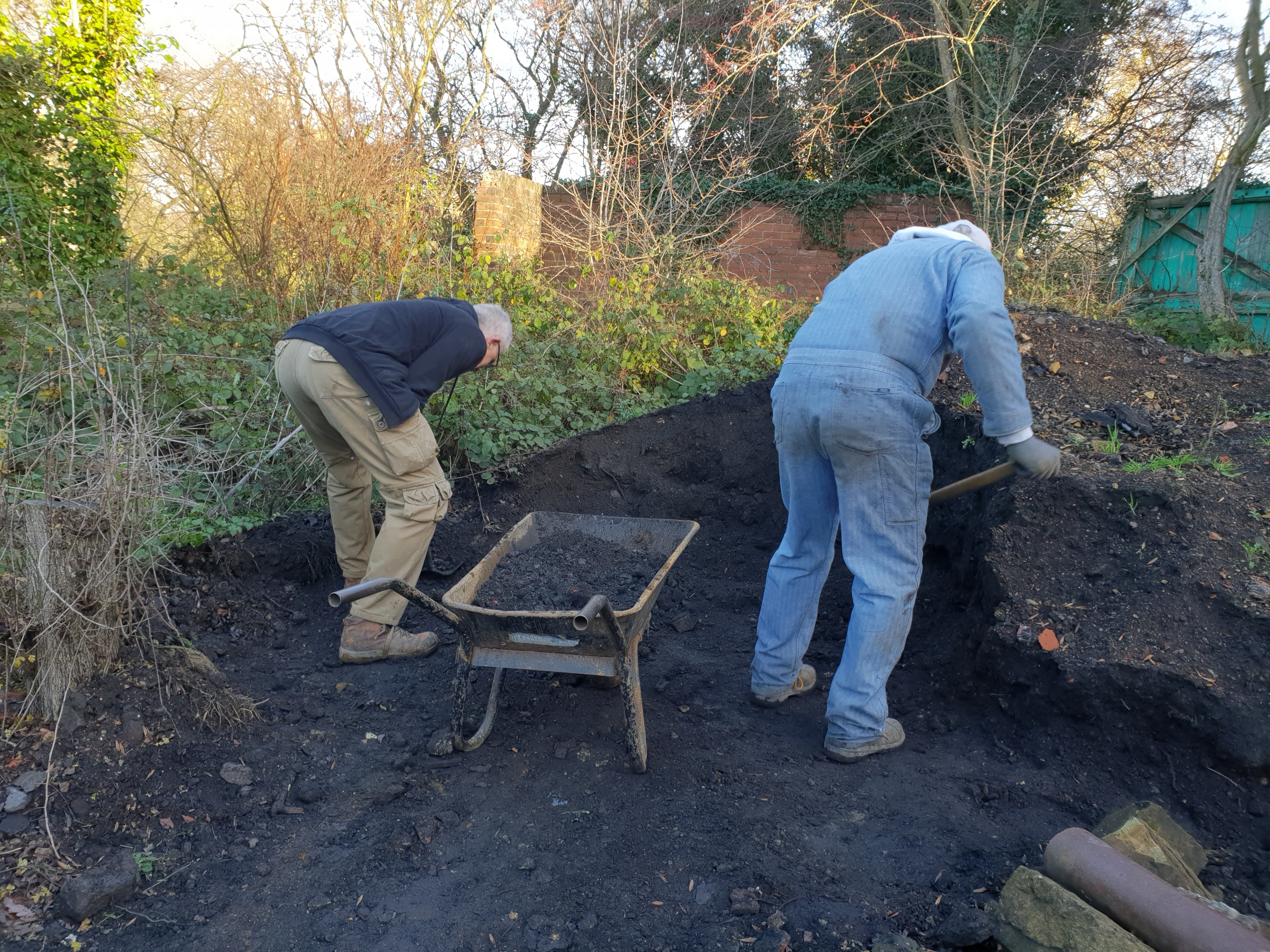 With mostly decent weather and trusty shovels, this was not too bad a job with barrows rolling back and forth.