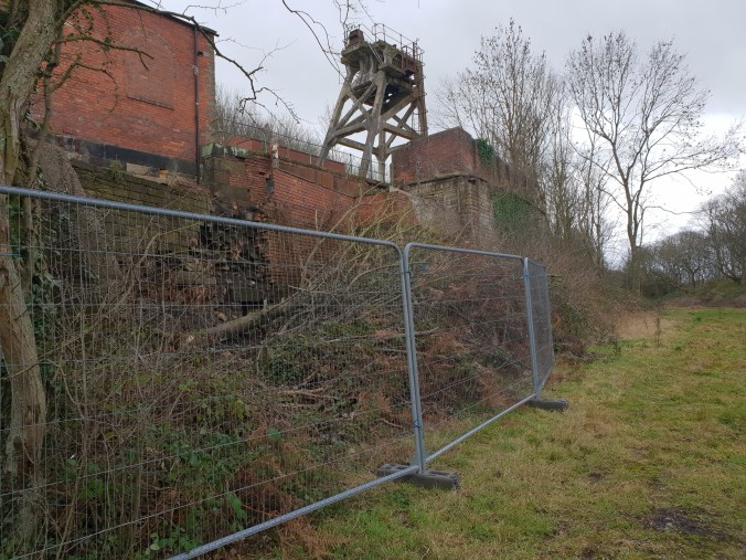 Less welcome, unfortunately was the discovery of continued criminal damage being done to the boundary wall of the site. From Wath Road the view of the main winding shaft headgear has, ironically , been getting more extensive top-down as unwelcome and criminal damage is done by removing layers of bricks from the wall.