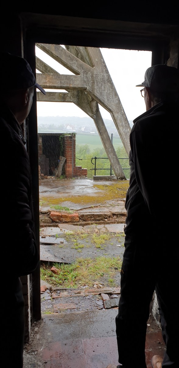It’s almost traditional now that no sooner have the friends got ready to sit down for some snap in the sun, or wanted to get another good hour of work in, than the heavens open and cool down our no-doubt all to hot heads. Today was no different. In fact it was torrential. The scorched ground was doubtless ready for a downpour, but the Friends ran for the switchgear building by the main headgear. With raindrops bouncing from the pit head, and steam rising from the cold rain hitting the baked metal plates it was quite a dramatic, compelling scene.