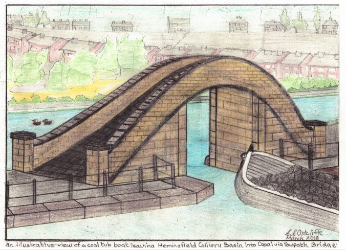 Sketch from memory of humpback towpath bridge into Hemingfield Basin, by Mr C. Ostcliffe