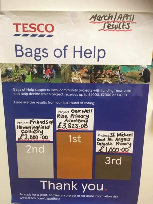Tesco Bags for Life results. FoHC came second. An amazing result.