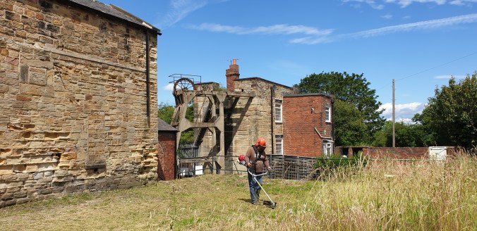 Back in the yard. The Friends were delighted to be able to deploy a new investment – a new improved strimmer, funded by the funds awarded by Tesco’s Bags for Life scheme, in which the Friends of Hemingfield Colliery came 2nd after being in local stores from March and April. We were delighted to receive such wonderful support from the Barnsley community, and the funds are going to providing improved tools to ensure the regular maintenance of the site. This piece of kit will mean a sharper looking pityard and a workload which will more easily be shared amongst the volunteers which is really helping the Friends ensure regular maintenance.