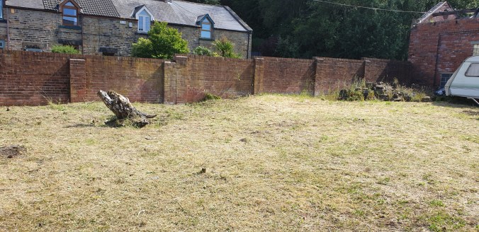 After a tussle with the undergrowth the main yard was clear, and looking prtty good even if we do say so ourselves! The heat was somewhat higher than the 20C suggested, and the grass looked more like hay in some places.