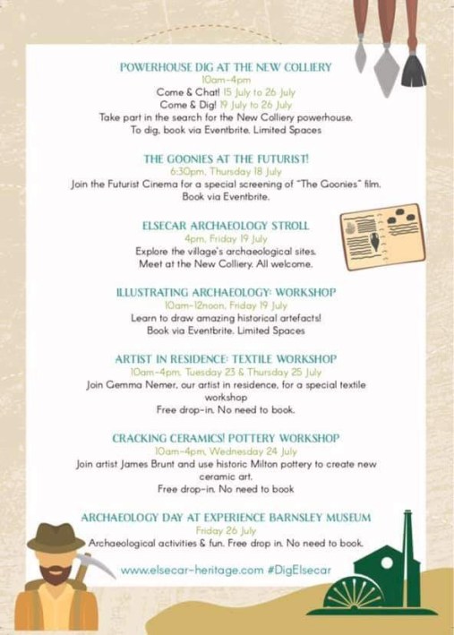 The wonderful folks down at Elsecar Heritage Centre, working with the Heritage Action Zone project team and supported by the Great Place Wentworth and Elsecar project were just completing the first week in a fortnight of community archaeology and related activities at Elsecar, to join in the national programme of events in the Festival of Archaeology.