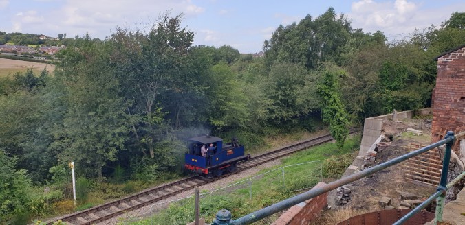 Working behind the safety of a heras fencing enclosure, the lower level work also meant that we could get a better view of the passing engine from the Elsecar Heritage Railway. Here we watched, listened in and enjoyed the heady smell of Gervase – a Sentinel vertical boiler engine (works no.6807), converted in 1928 from a Manning Wardle saddle tank of 1900 (no.1472).