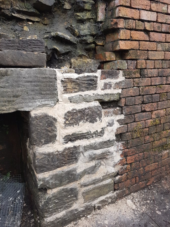 This work continued with aplomb on this Open Day. Rather than wax lyrical about the finer points of mixing, carting, sizing, laying and pointing in the reclaimed standstone blocks with real lime mortar, it is probably better just to show the actual results of a steady day’s work for the team.