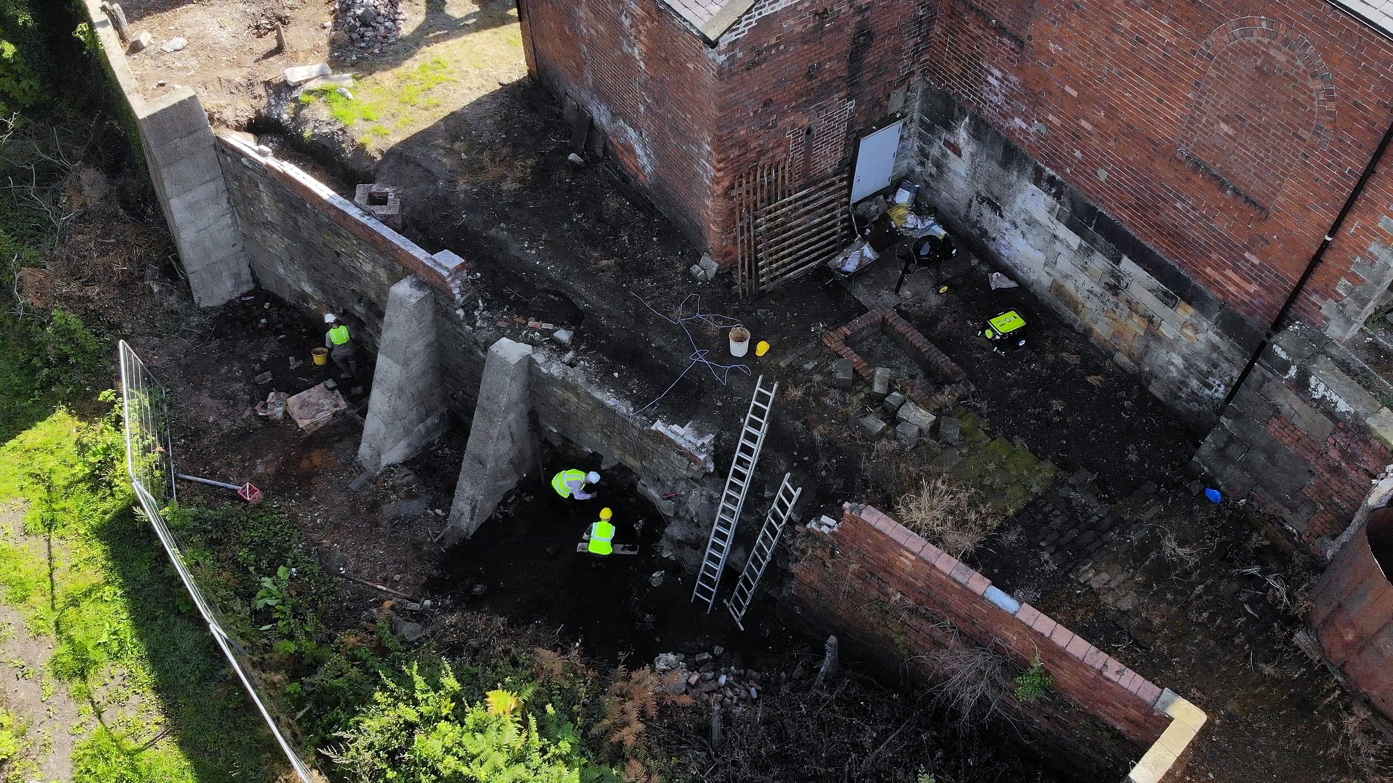 Jumping back to the present day, the team returned to work, and set to securing the rear of the site. The old wooden gates have largely rotted and collapsed, although not without a certain amount of vandalism in the past few years – people really should learn to contain their excitement and visit the site when it’s officially open. You can see much more and you might, just *might* learn something to boot.