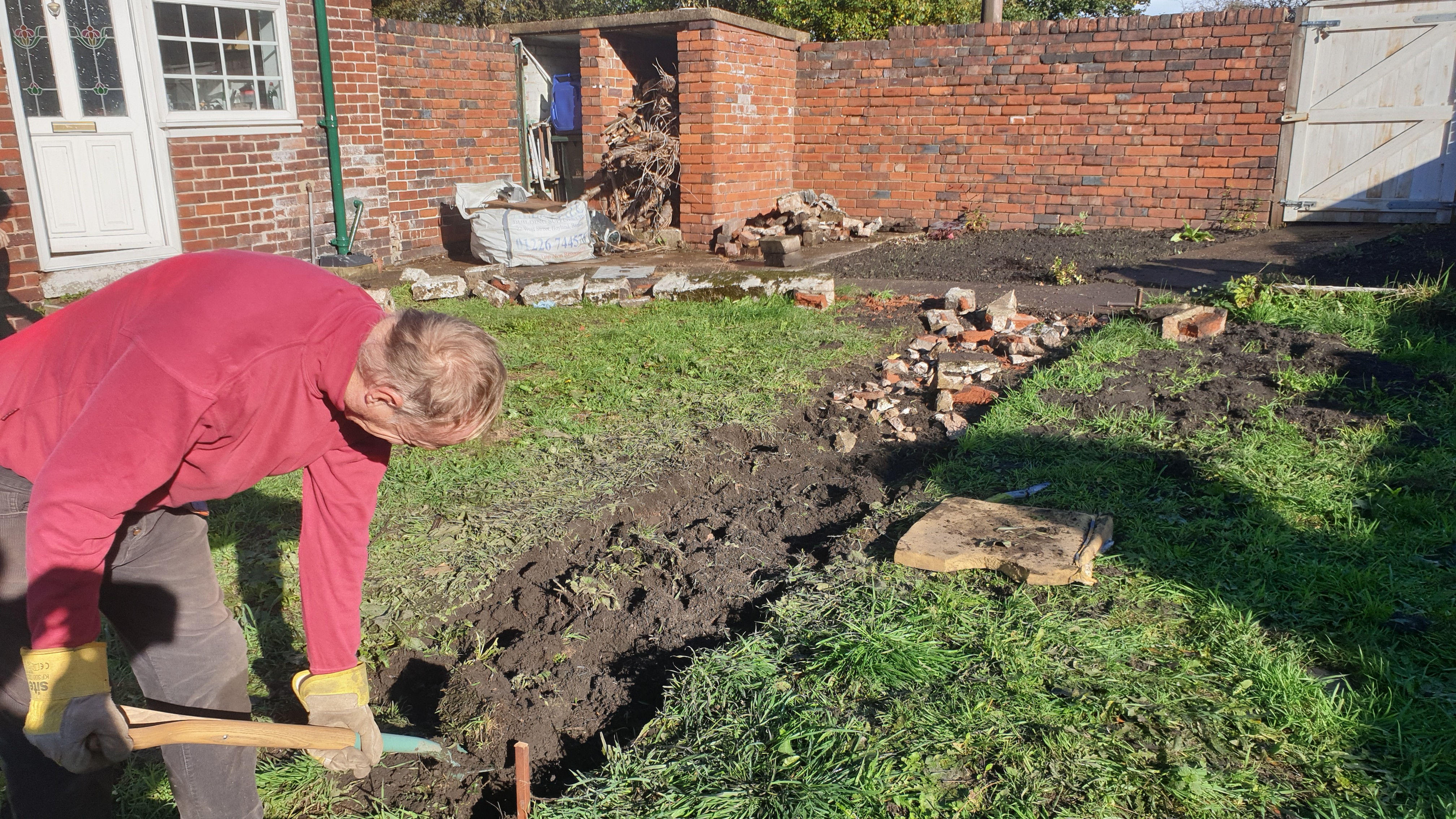 Pausing for reflection, and a little shelter, the regular volunteers loitered in and around Pump House Cottage, and looked out over a dark, wet, and somewhat dank looking site.