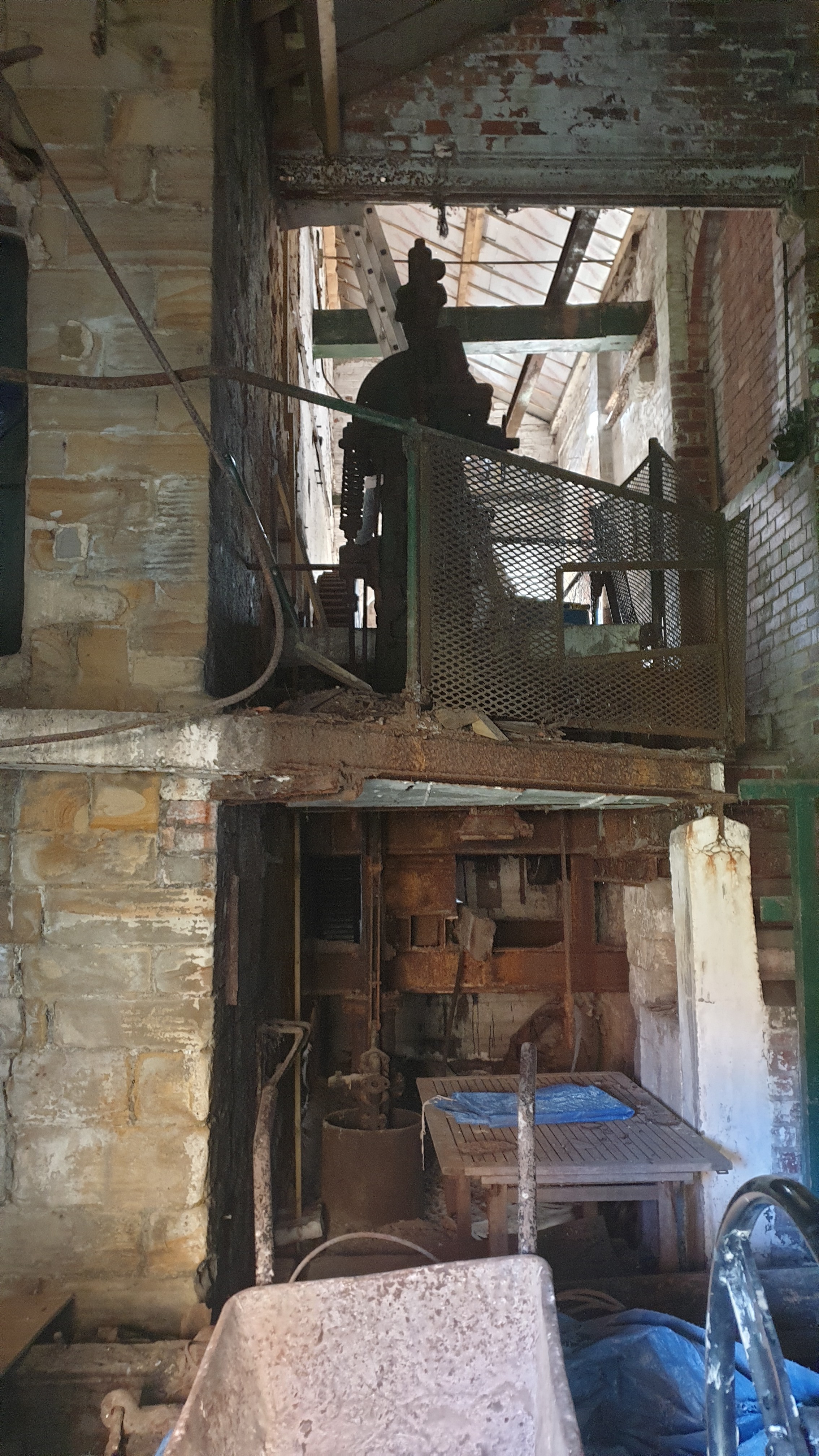 Nearby in the winding engine house, further attention was being paid to the pump shaft winder. Although damaged in the 2000s when the motor and other metalwork thefts occurred, much remains, covered in years of dirt, so there’s always mileage in brushing up and dusting down to get a better look.