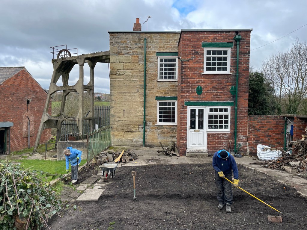 This week, the task was to level this area to where the heap once sat. Keen to get started, the pickaxe, shovel and rakes were collected and elbow grease was applied.