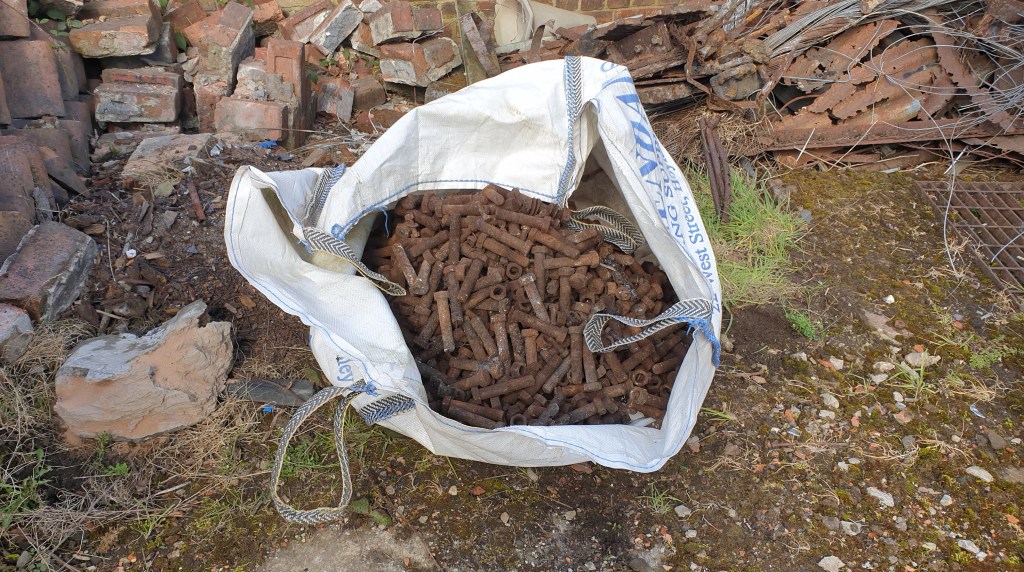 Part of caring for the site is keeing it tidy. With roofless buildings and burnt metal from past vandalism and theft, there is no shortage of rusty rubbish; oxidised scraps laying around. Gathering the rubbish with an eye to recycling or salvaging any for scrap will assist in supporting the long-term care of the site. But it is dirty heavy work.