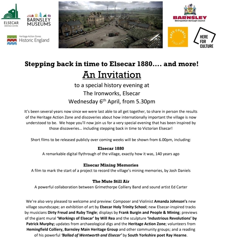 Elsecar – an evening of History and Creativity, 6th April 2022