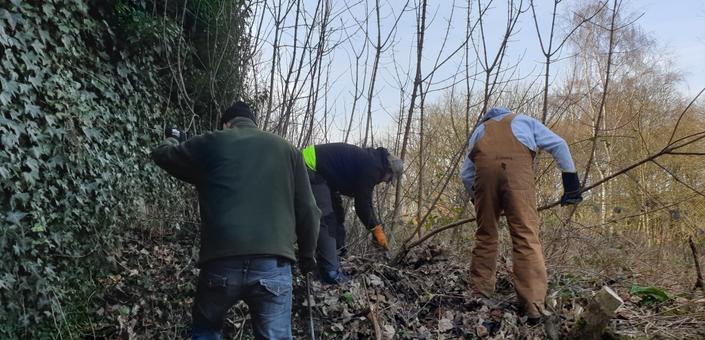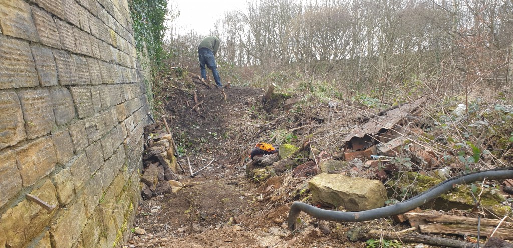 Over several busy Saturdays from 11th to 25th February our eager volunteers John, Paul, Jamie, Paul, Mitchell and Chris returned to the big task of clearing the bottom of the retaining wall at the rear of the site.