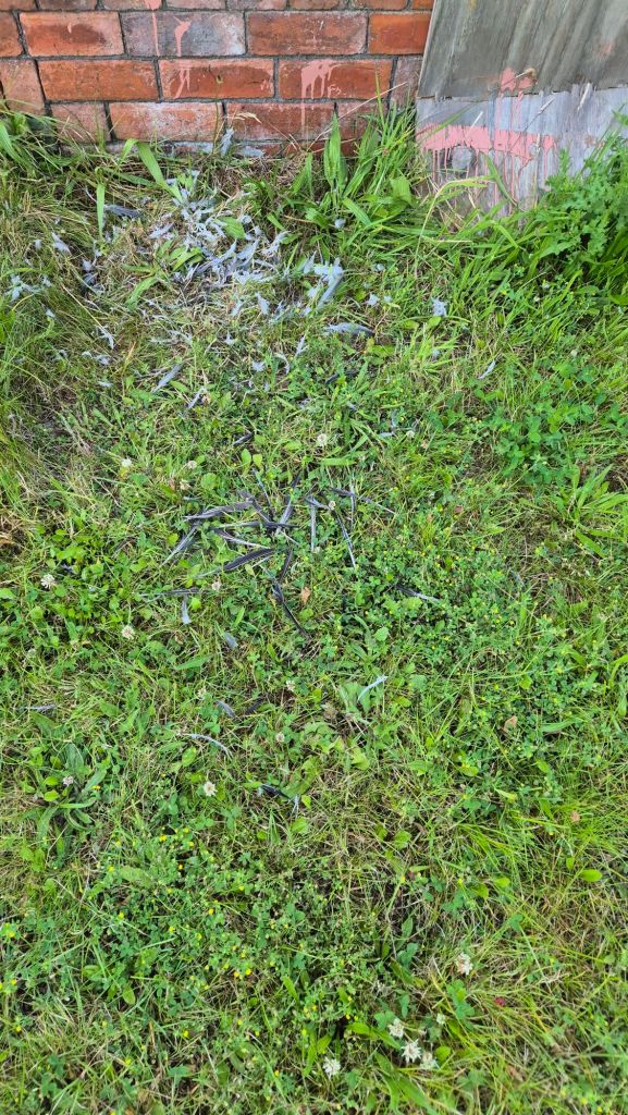 …and perhaps less happy feathers on the ground near the roofless switchgear building.