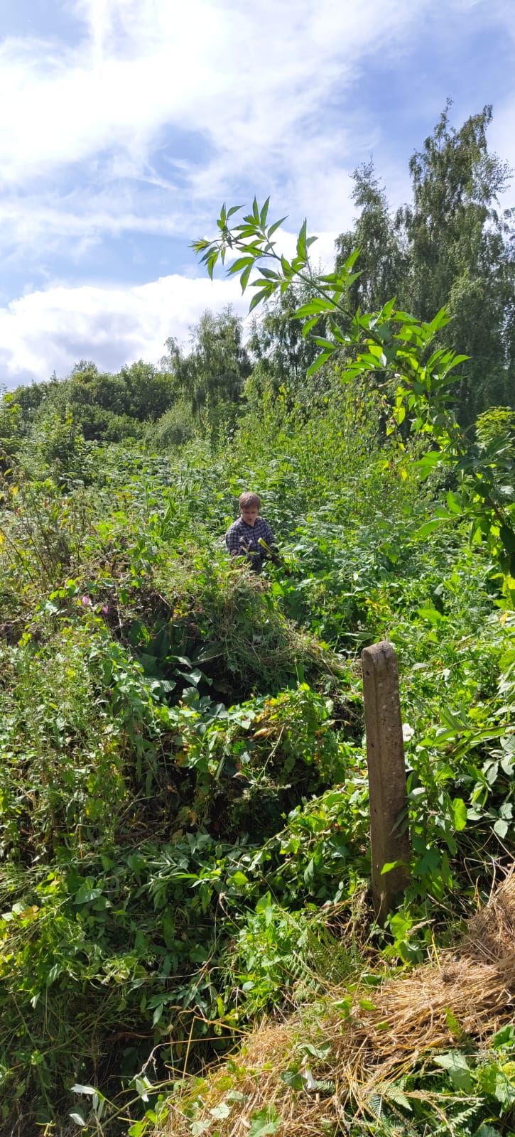 In August, with a season of work delayed on the rear retaining wall due to the variable weather, the time had gone for some emergency selective weeding; Himalayan balsam edging closer meant only one thing – time to get down and dirty (well mostly green).