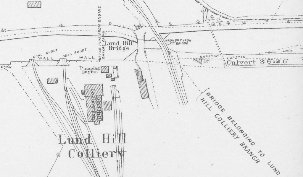Detail from 1890s plan of the Elsecar Branch of the Dearne and Dove Canal, showing the Lundhill Colliery canal connection, footbridge and railway branch lift-bridge which connected to the main colliery site some distance away (Courtesy private collection)
