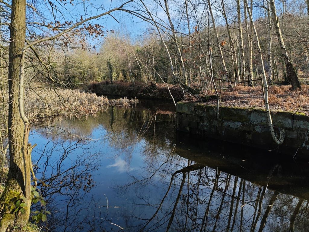 Best seen at this time of year, the trees are still thin, and the undergrowth remains sparse so the lines of the canal basin can clearly be seen.