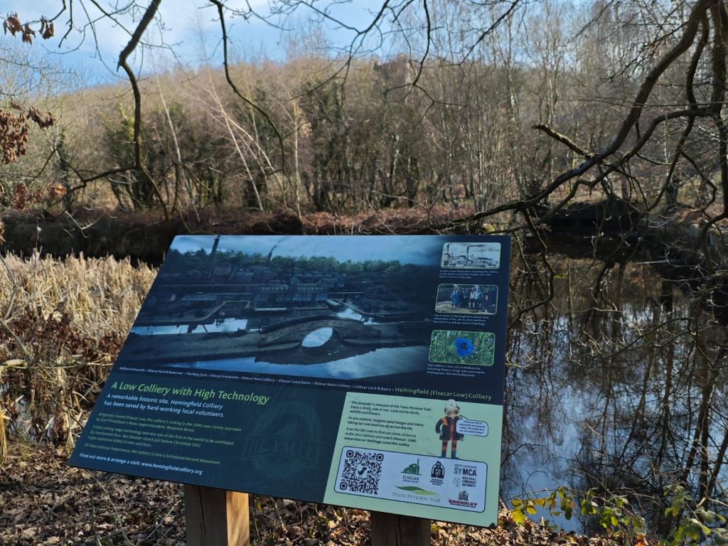 Taking a break from site, and enjoying the sunshine, we’re always keen to check on the canal side interpretation board below the colliery and to inspect how the listed canal basin has weathered through the worst of the winter months.