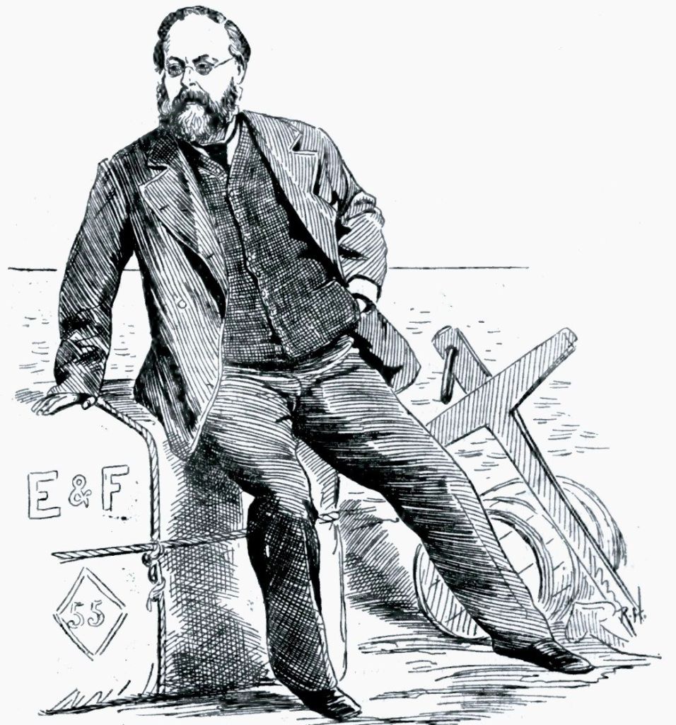 His name is now most famously associated with the ‘Plimsoll Line’ or mark, loading or lading line, indicating safe loading limits for ships – i.e. paraphrasing the statute: ‘a mark upon each side amidships, or as near thereto as is practicable, in white or yellow on a dark ground, or in black on a light ground, a circular disc twelve inches in diameter, with a horizontal line eighteen inches in length drawn through its centre. The centre of this disc shall indicate the maximum load-line in salt water to which the owner intends to load the ship for that voyage‘.
