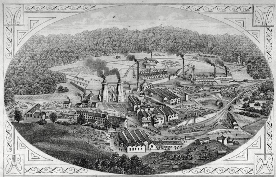 At that time the staple industry was the manufacturer of iron rails, large quantities of which were supplied to the leading railways, both at home and abroad. It is worthy of note that a quantity of these rails for use on the Metropolitan Railway were case-hardened on the head for the purpose of increasing their durability. After the introduction of the Bessemer process, however, the manufacture of iron rails on a large scale ceased, and the works were adapted for other purposes.