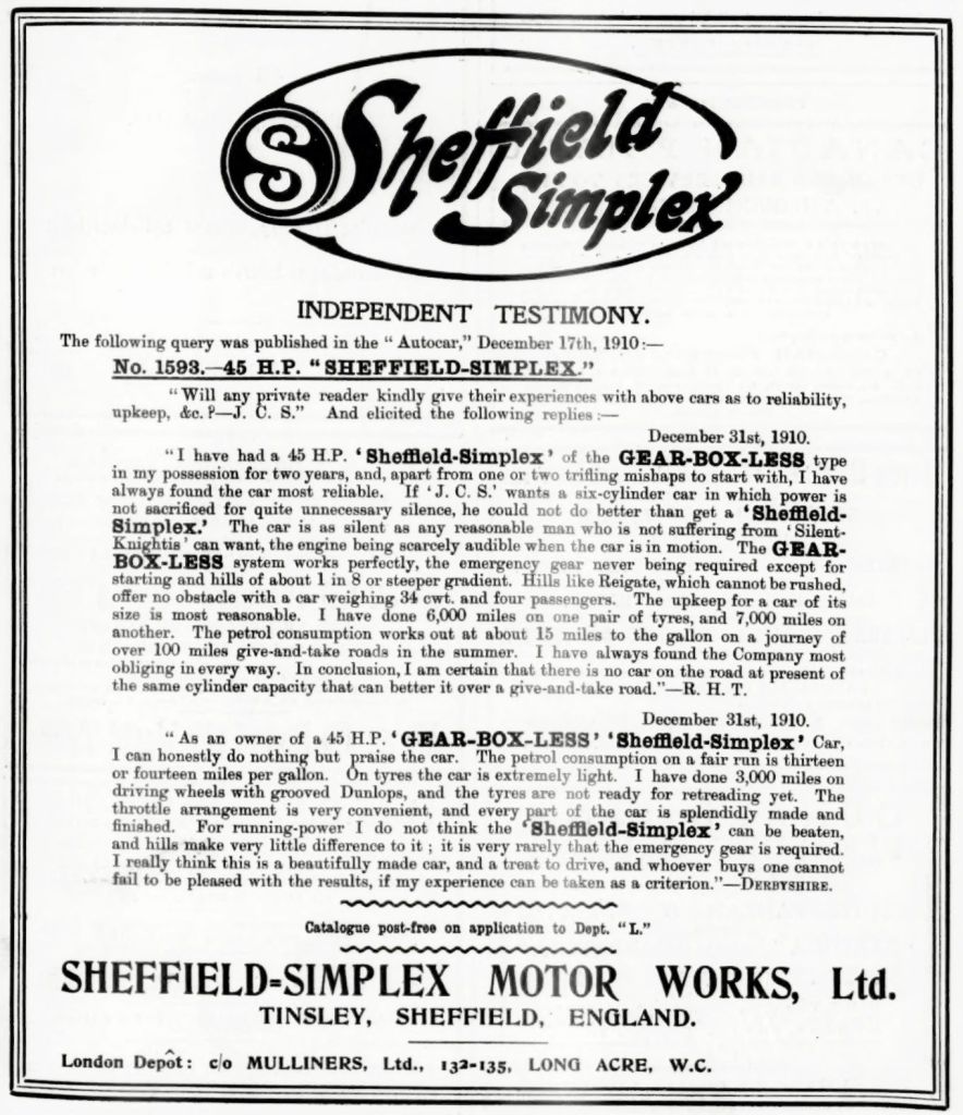 Sheffield-Simplex cars right from their introduction have been eminently successful, having obtained an excellent reputation, and are to-day recognized as the finest examples of motor engineering extant.