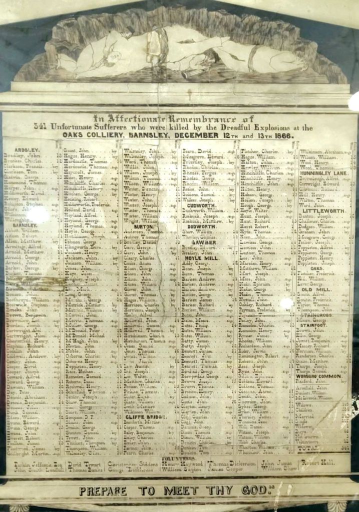 The 12th December is a dark day in history for Barnsley. The catastrophic loss of life which occurred when there were a series of underground explosions at the Oaks Colliery, near Hoyle Mill.