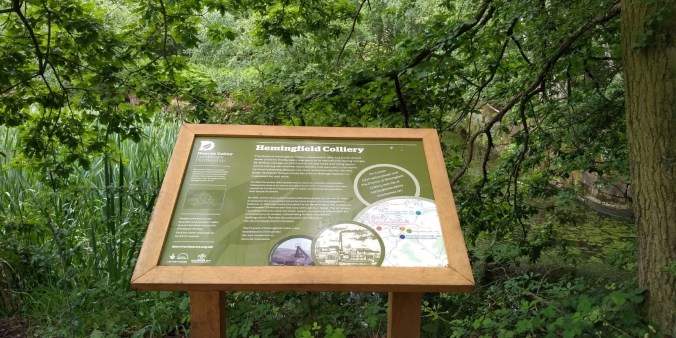 Interpretation board on the history of Hemingfield Colliery in situ at Hemingfield basin (Photo credit: Andrew Jones)