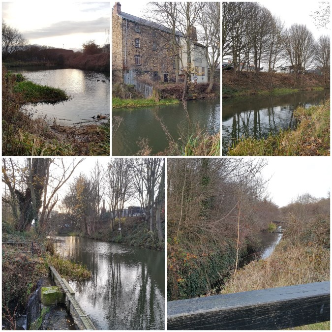 Views from Elsecar Basin down the tow path, past the old flour mill, up to Elsecar Top Lock, November 2017