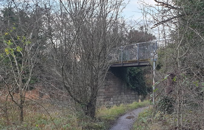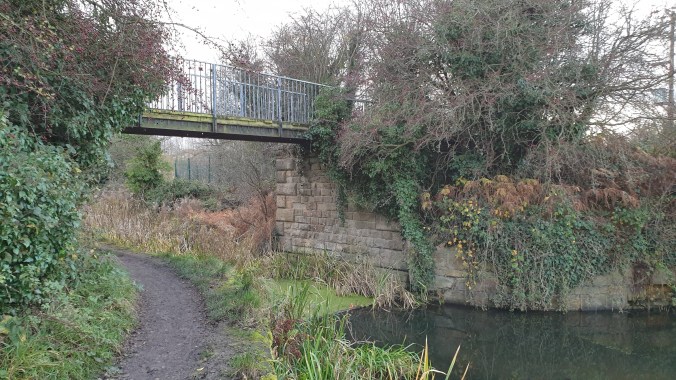 View of Intake Bridge looking up the branch towards Hemingfield (November 2020). Bridge was vandalised and put out of use in May 2022. Pending Barnsley Council reviewing repair/replacement options