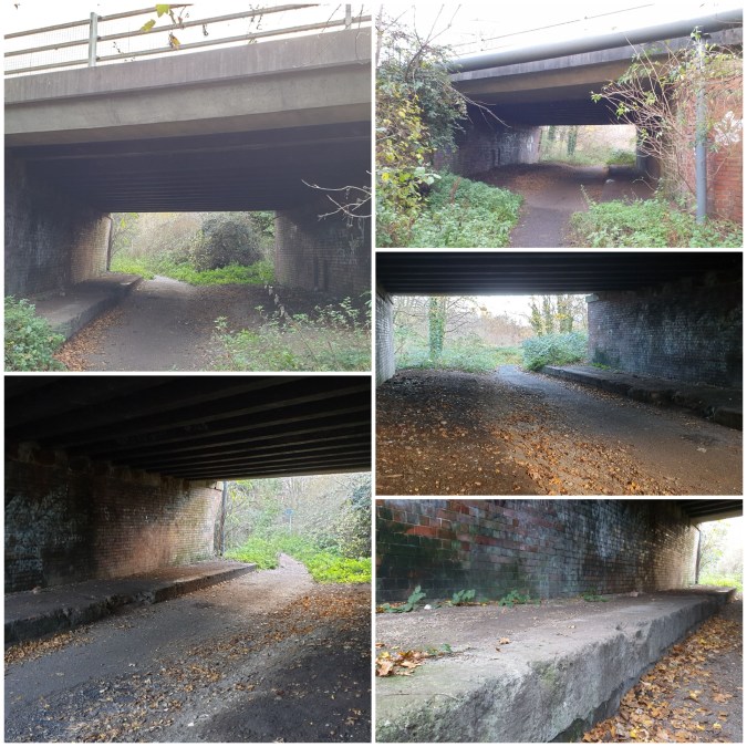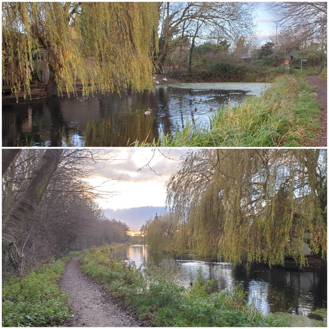 View of end of water before Brampton Road bridge, and beneath the view up the canal from Brampton Road bridge (November 2020)