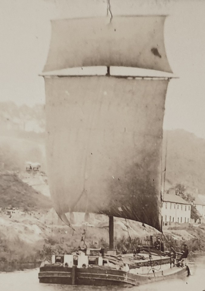Detail of square rigged Humber keel on the Don Navigation, from early twentieth century photo postcard