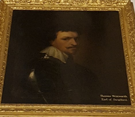 Following the rules of primogeniture, the first surviving male heir to Sir William Wentworth in the Baronetcy was Thomas Wentworth (1593-1641). Married three times and twiced widowed, his political career would bring him to national recognition. He began service under King James, at first defending Parliament against the King’s ministers’ calls for war taxes, but later serving under King Charles I, and becoming a privy counsellor in 1629, acting as a loyal bulwark and authoritarian proxy in Ireland and bringing him fame and notoriety.