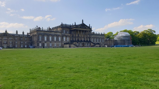 Wentworth Woodhouse, showing scaffolding for roof work on the North Pavillion, Spring Bank Holiday 2021
