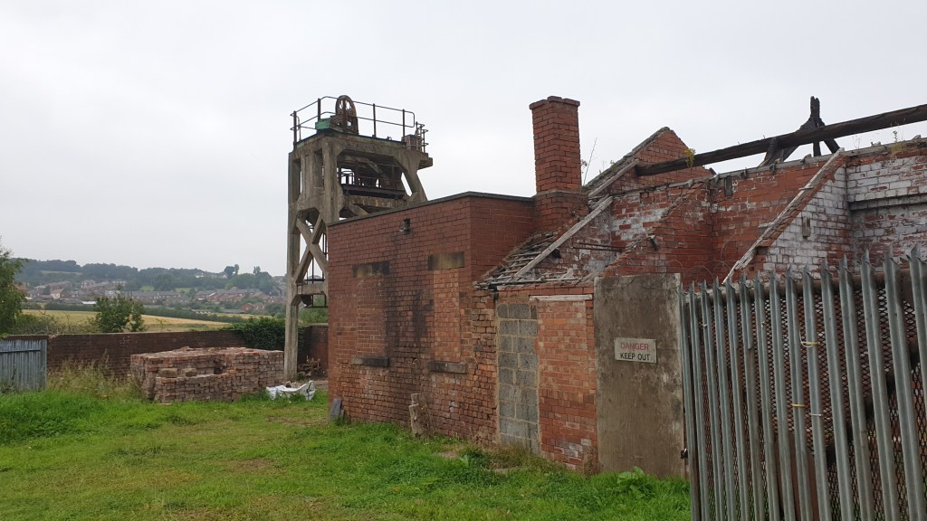 Cloudy but still warm. View of the main headgear from the main gates. Saturday 15th August 2020